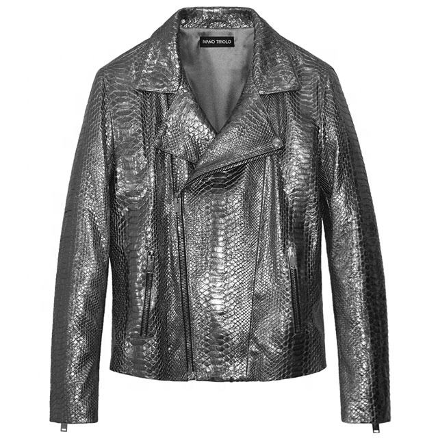 Chaqueta Bomber de Invierno Personalizada, Informal, de Talla Grande, Impermeable, Transpirable, de Cuero de Pitón Plateado Chiodo, Protectora contra el Frío