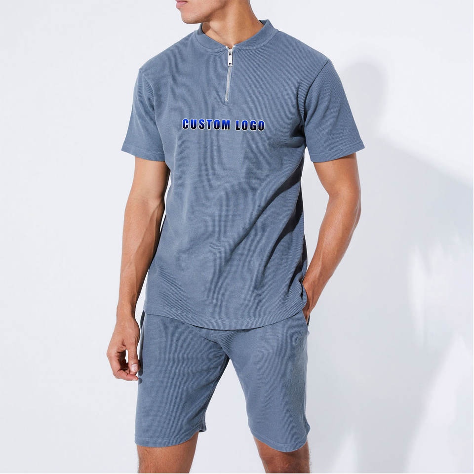 Conjunto de Camiseta y Pantalones Cortos Personalizados con Cierre de Cremallera, 100% Algodón Grueso, Corte Holgado y Extra Grande para Hombre, Conjunto de Verano