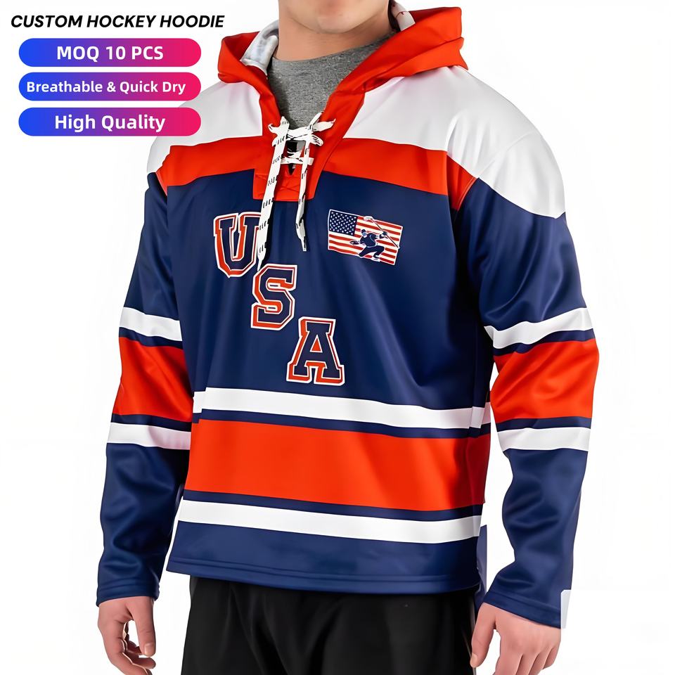 Sudadera con Capucha de Poliéster de Secado Rápido y Transpirable, Personalizada para Hombre, con Cuello Ajustable, Impresión por Sublimación, Estilo Jersey de Hockey