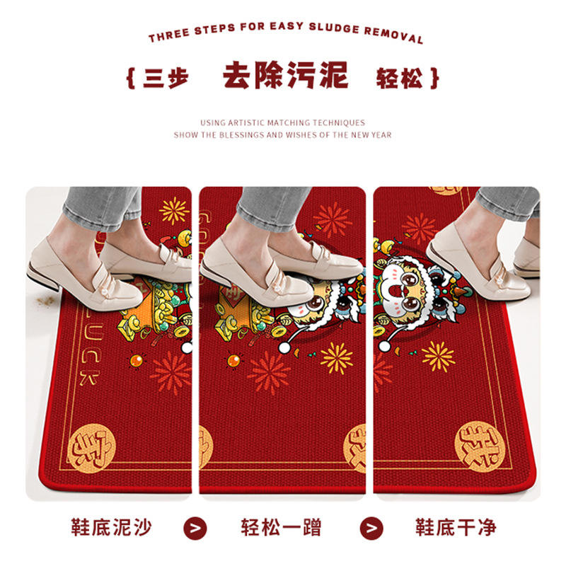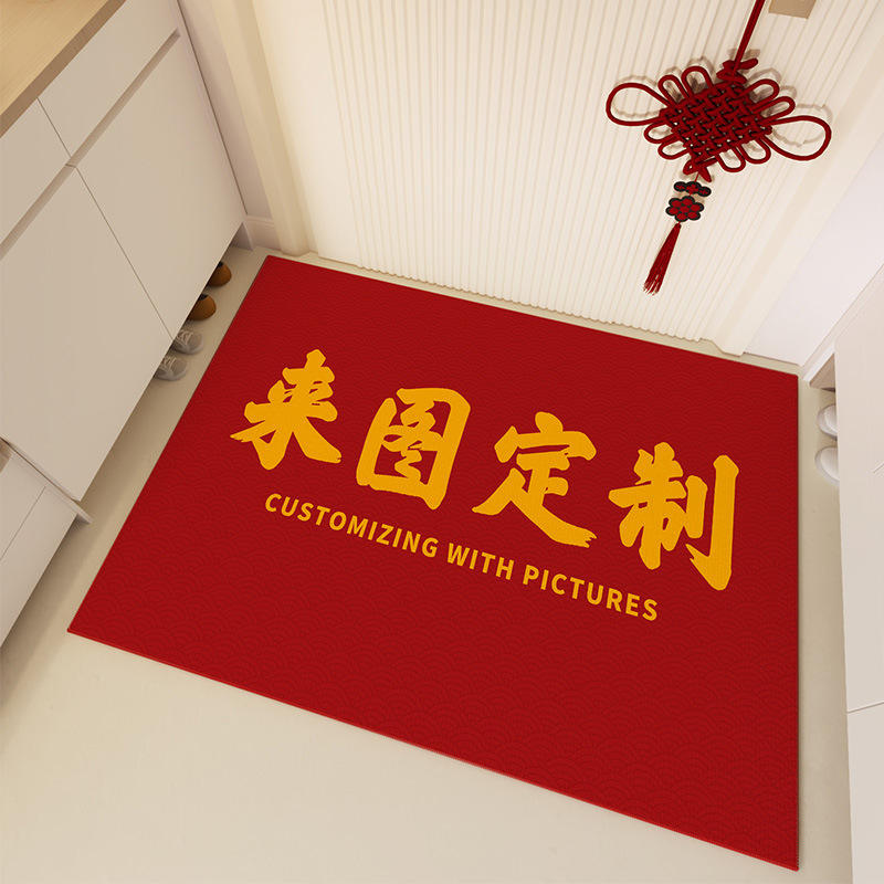 Alfombra de entrada personalizada de estilo chino rojo, rectangular, antideslizante, de fibra de poliéster, para la entrada del hogar o el dormitorio.