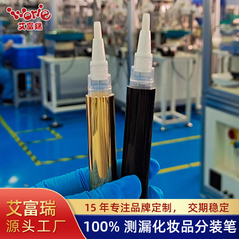 Bolígrafo recargable hecho a medida con carcasa de aluminio, mecanismo giratorio y cuerpo metálico para uso cosmético.