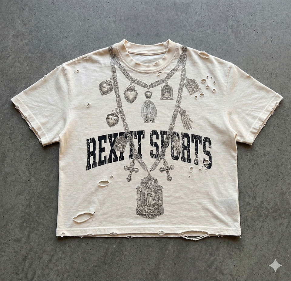 Camiseta Deportiva Rexfit Personalizada OEM, Camiseta Extra Grande para Hombre, Cuello Redondo, Estilo Vintage, Lavada, con Estampado Desgastado, Manga Corta, a la Moda