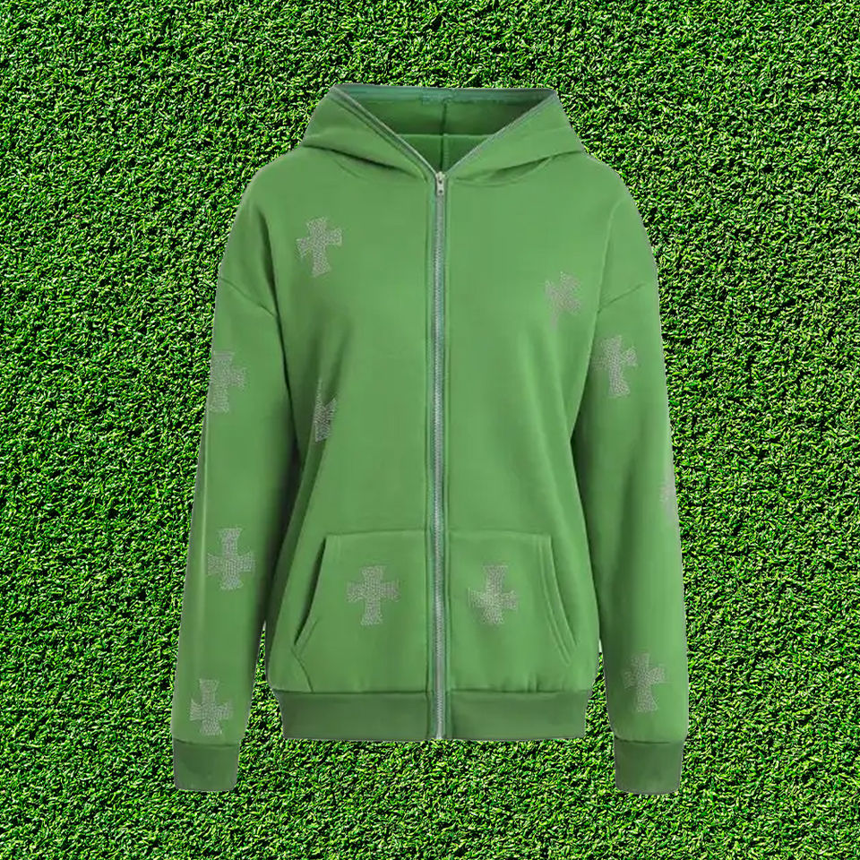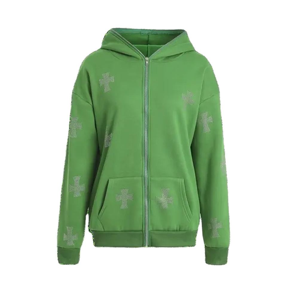 Sudadera con capucha con cordón de diamantes de imitación bordada con cremallera completa de Color sólido hecha a medida, ropa de calle cómoda para las estaciones de invierno, sudaderas con capucha