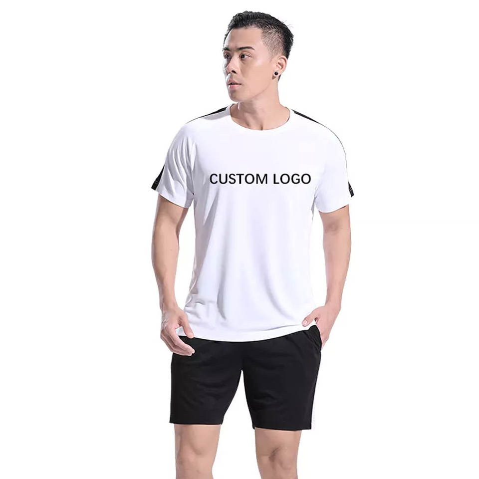 Conjunto de camiseta y pantalones cortos casuales para hombre, con diseño de estampado por sublimación de patrón sólido, cintura elástica, transpirable y hecho a medida.