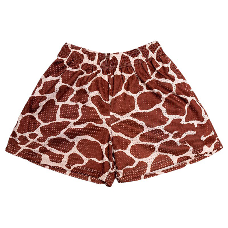 Pantalones cortos de malla de sublimación por encargo Pantalones cortos de playa con bolsillo de parche con estampado de leopardo por encargo