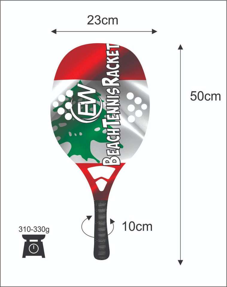 Raquetas de Tenis y Playa Hechas a Medida, Cara de 20 mm, Peso de 320-340 g, Longitud de 50 cm, Empuñadura de Fibra de Carbono
