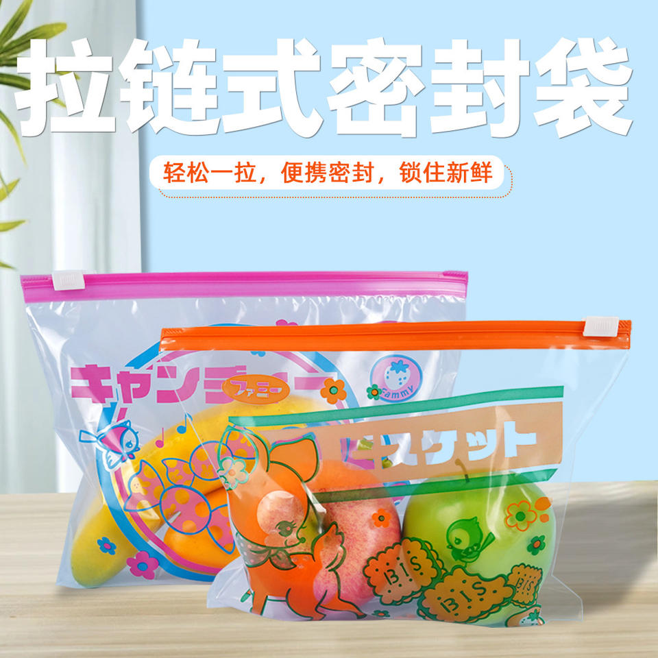 Custom Made Transparent Pe Food Storage Bags With Sliding Zipper Rectangle Shape For Fruit And Snacks Sealing Bag