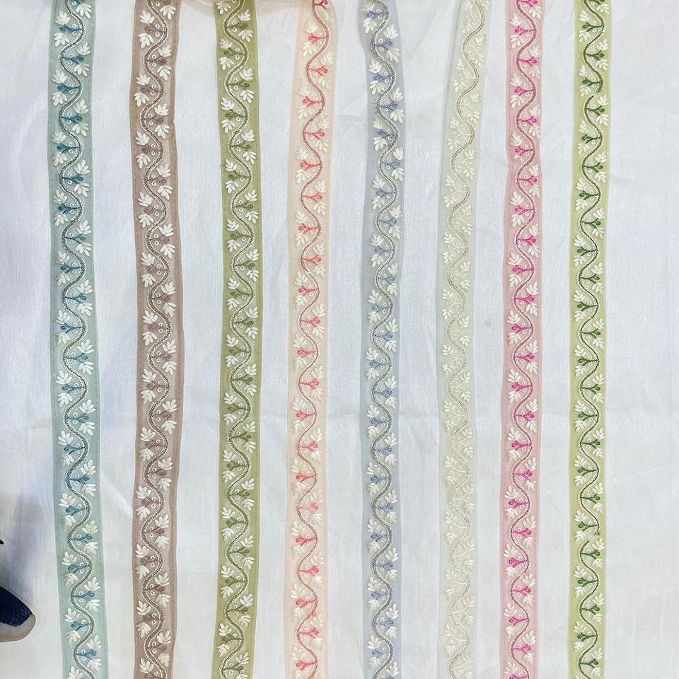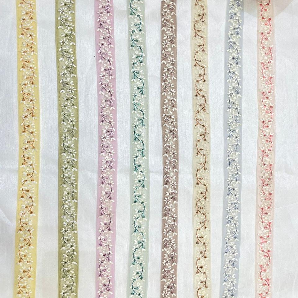 Cordones Bordados florales de 1 pulgada vintage hechos a medida con decoración de cuentas para diseñadores de vestidos y Diseñadores de ropa