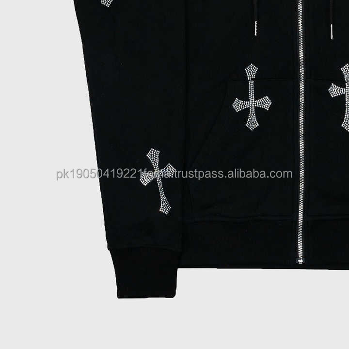 Sudaderas con capucha de alta calidad impresas bordadas de invierno hechas en Pakistán MOQ bajo diamantes de imitación para la venta