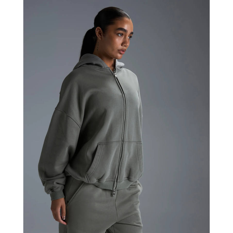Por encargo Zip up alta calidad niebla verde hombres Sudadera con capucha 100% algodón con serigrafía 450GSM pulóver cremallera Sudadera con capucha para hombres