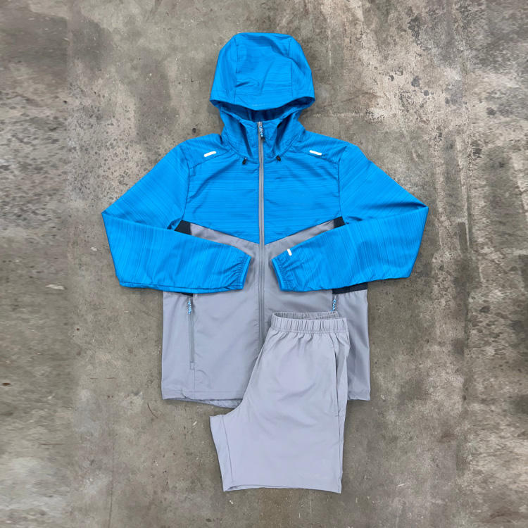 Cortavientos de nailon ligero con cremallera hecho a medida, Sudadera con capucha de dos piezas, chándal, chaqueta de chándal y conjunto corto para hombre