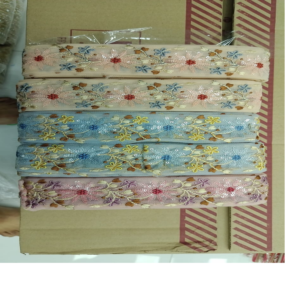 Hecho a medida con cintas bordadas a máquina de bordado de lentejuelas en diseños florales y colores para vestidos de novia en 2,5 pulgadas.