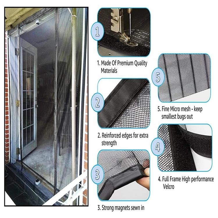Cierre magnético de cierre automático moderno personalizado, Red de puerta mosquitera de malla resistente para perros, Patio, porche, puerta corredera Invisible