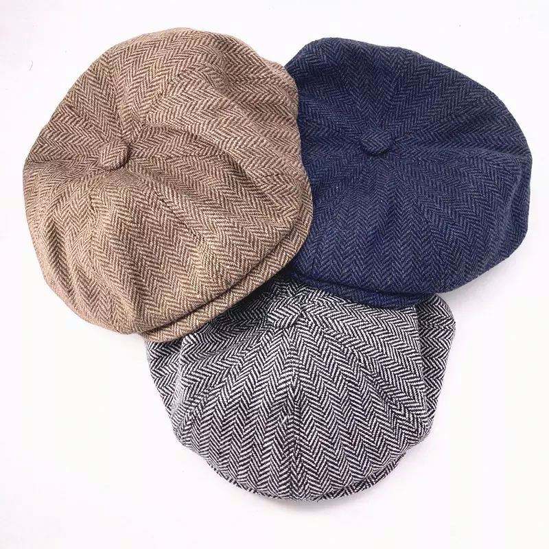 Gorra Gatsby Personalizada para Hombre, Gorras de Lana Tweed Estilo Cabbie Ivy, Gorra Peaky Blinder al por Mayor, Gorra Baker Boy de 8 Paneles, Gorras Newsboy de Espiga para Hombre
