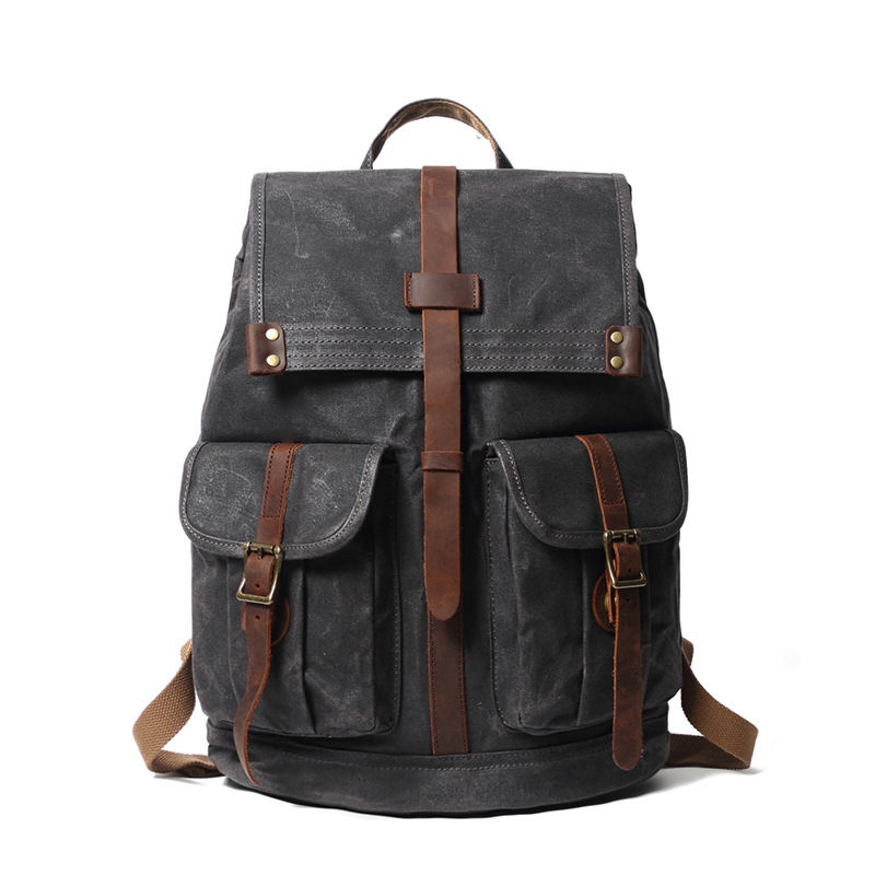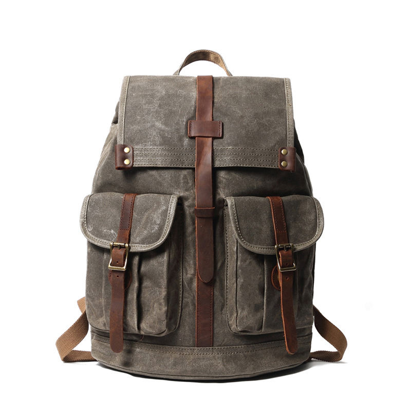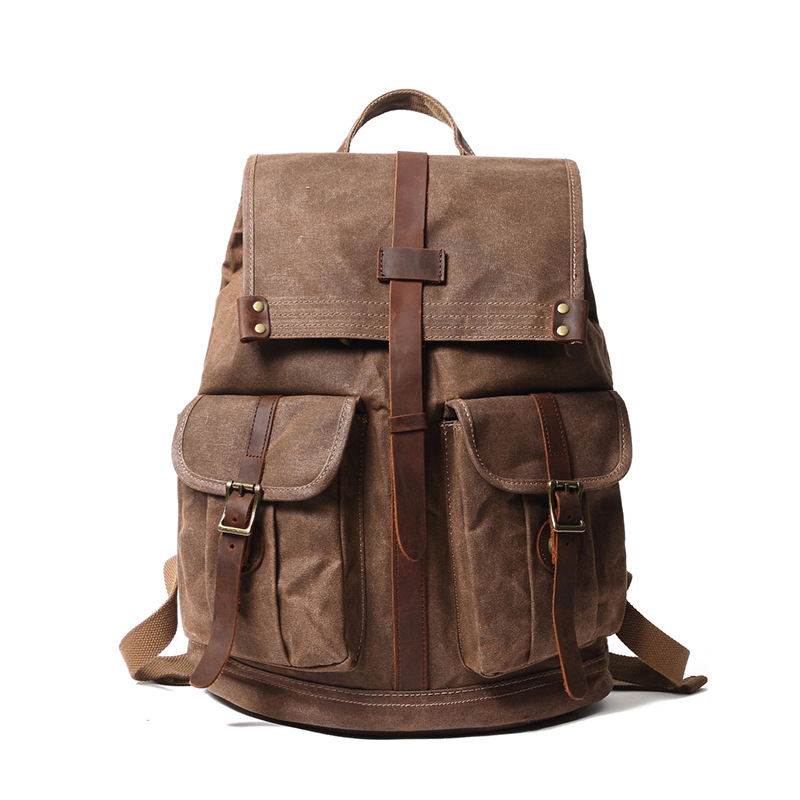 Mochila de Lona Personalizada para Hombre, Estilo Retro Vintage, Impermeable, Mochila de Cuero y Lona para Hombre