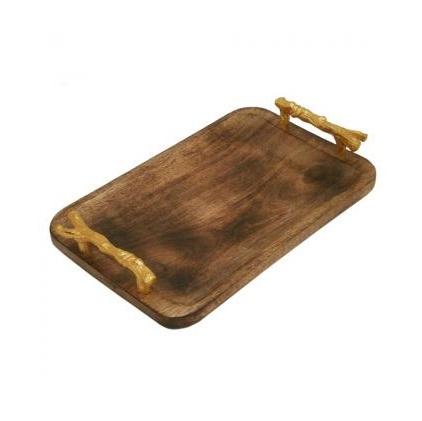 Bandeja de madera de mango con asas Decoración y uso de servicio Bandejas de madera a precio mayorista MOQ bajo Fabricación personalizada Rectangular