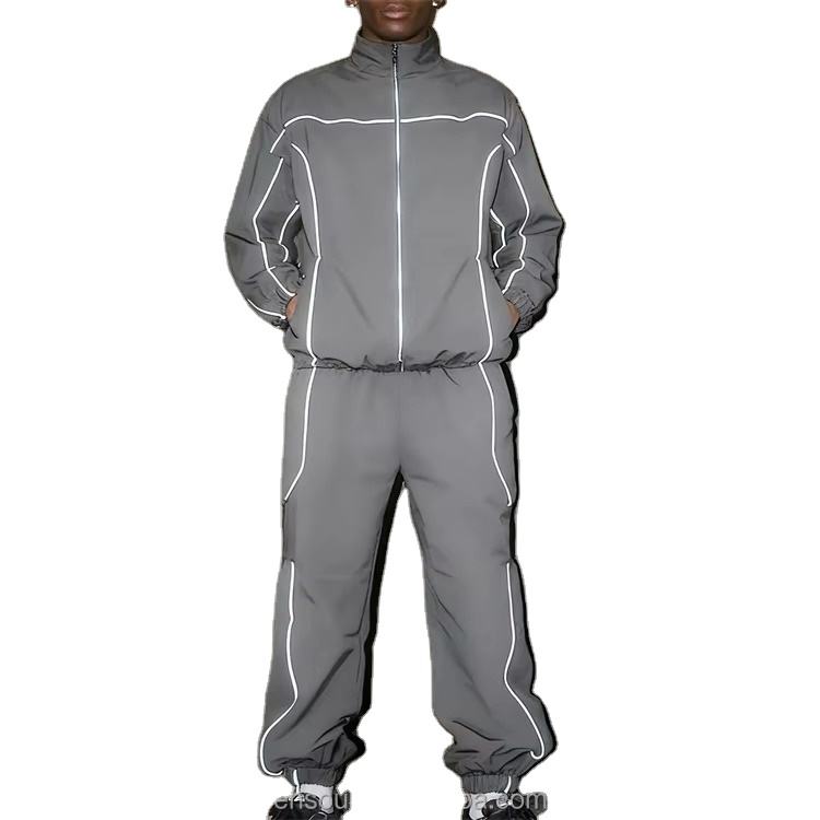 Conjunto de Chaqueta de Dos Piezas con Cierre y Diseño de Color Combinado, Fabricación Personalizada, Chaqueta Cortavientos de Nailon y Poliéster, Ropa Deportiva Urbana para Hombre