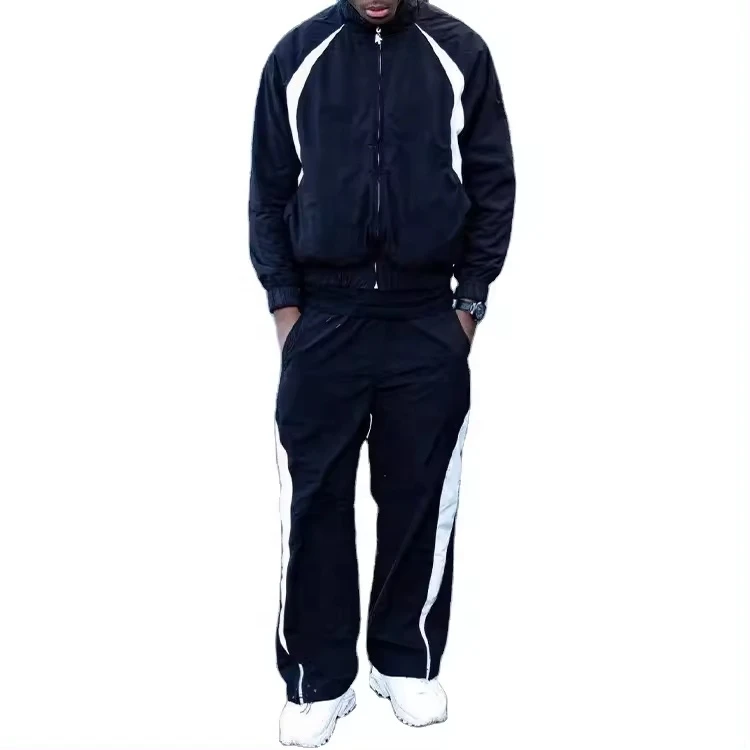 Conjunto de Chaqueta de Dos Piezas con Cierre y Diseño de Color Combinado, Chaqueta Deportiva de Nailon y Poliéster, Cortavientos, Traje Deportivo de Nailon para Hombre, Fabricación Personalizada