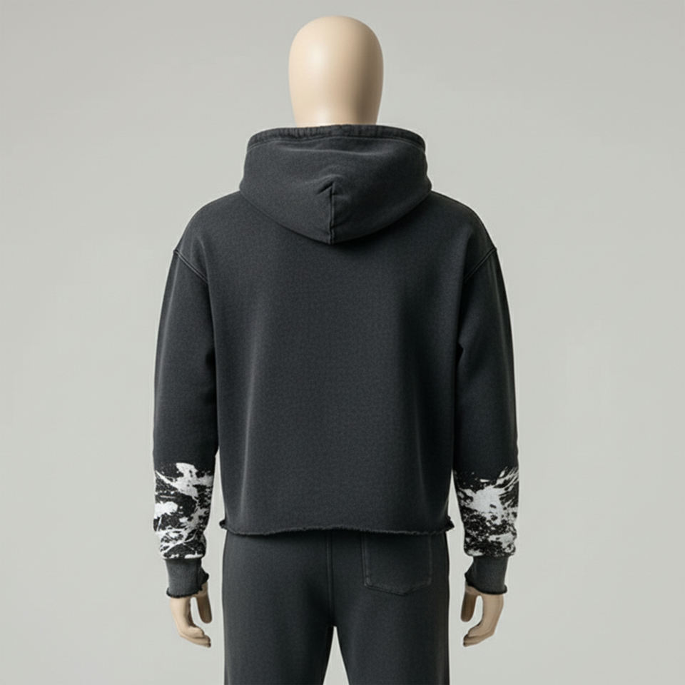 Sudadera corta con capucha, de tejido pesado.:tapiz de sudadera con capucha de peso pesado