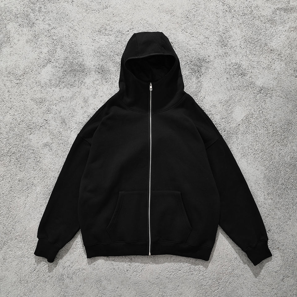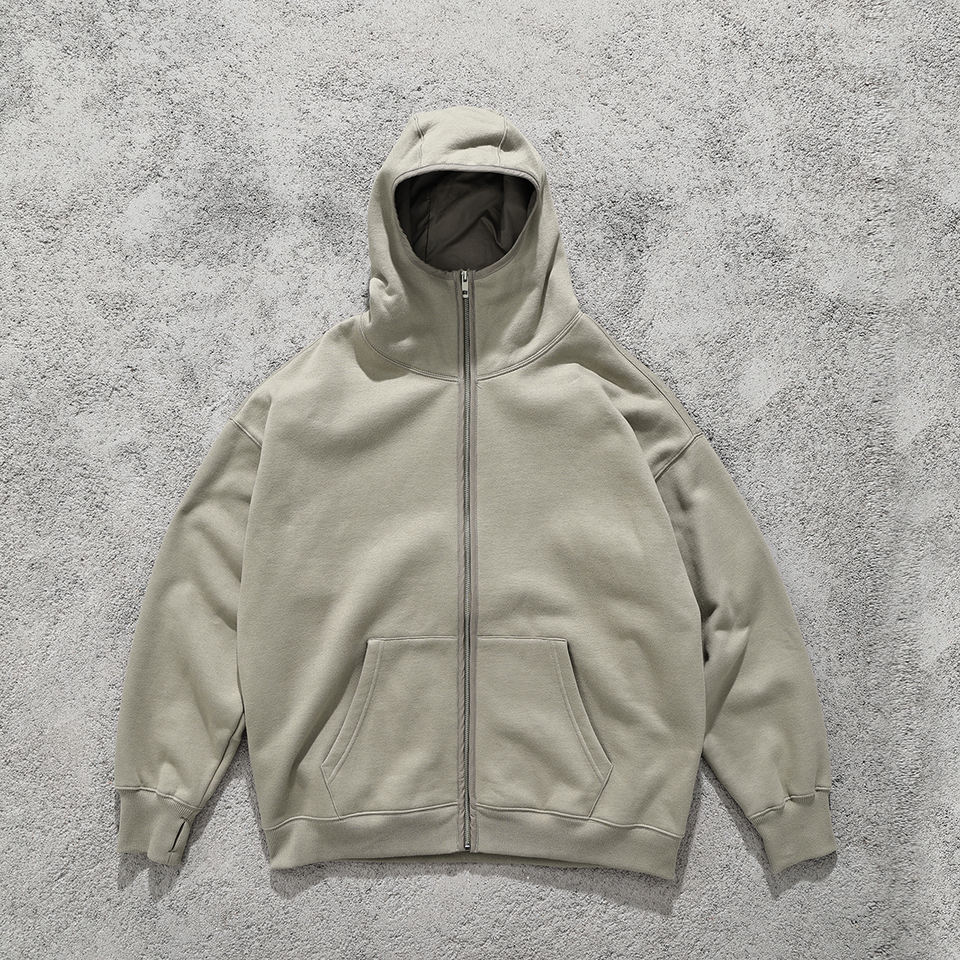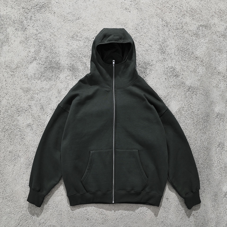 Fabricante personalizado de lana de algodón Full Zip Up Hoodie Puff Print Acid Washed Hoodies
