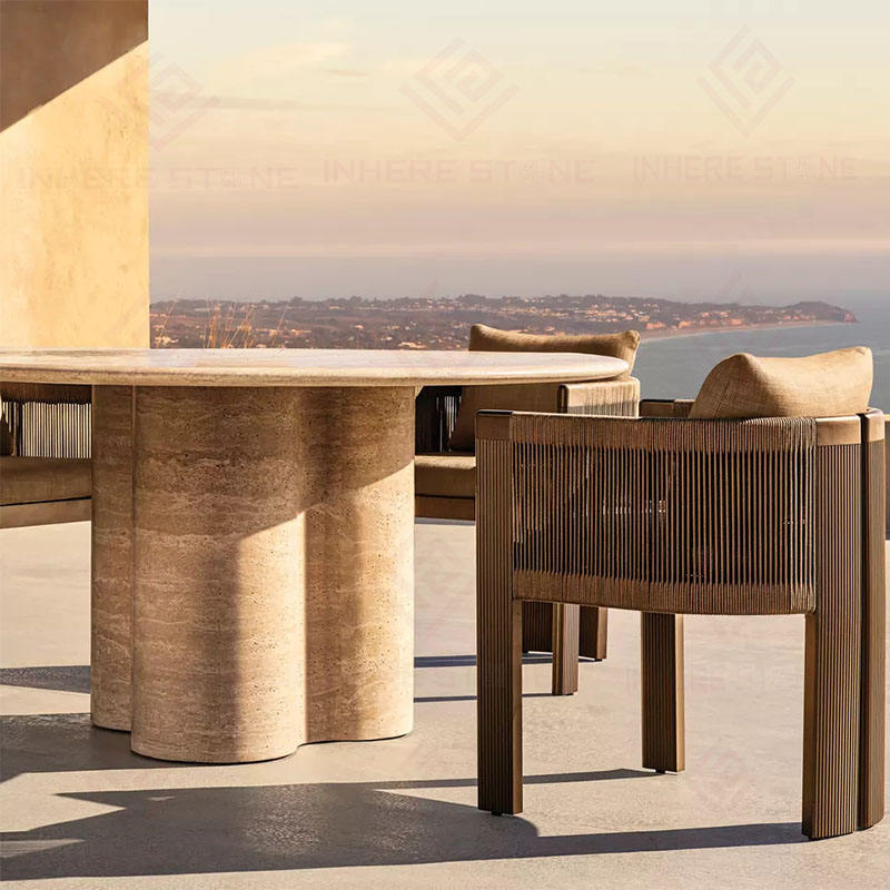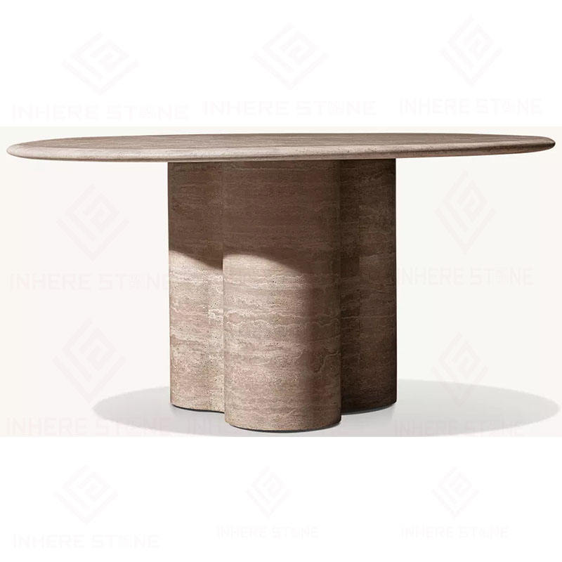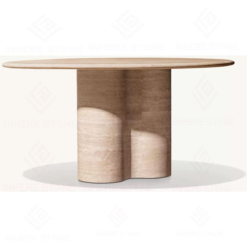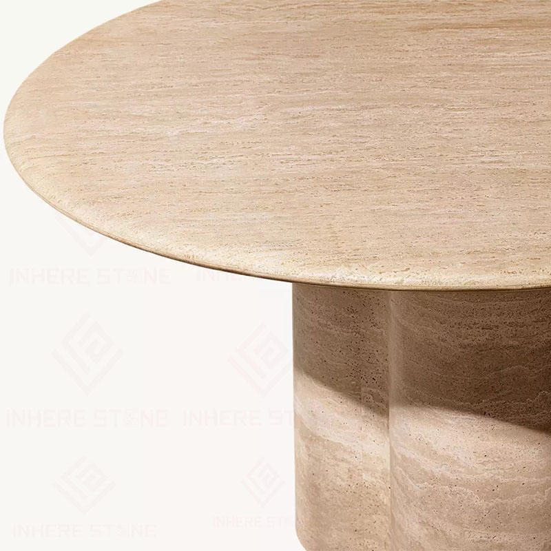 Mesa de Comedor Redonda Decorativa de Mármol Personalizada con Patas Sólidas, Diseño Contemporáneo, Mesa de Comedor de Travertino Natural, Muebles de Cocina