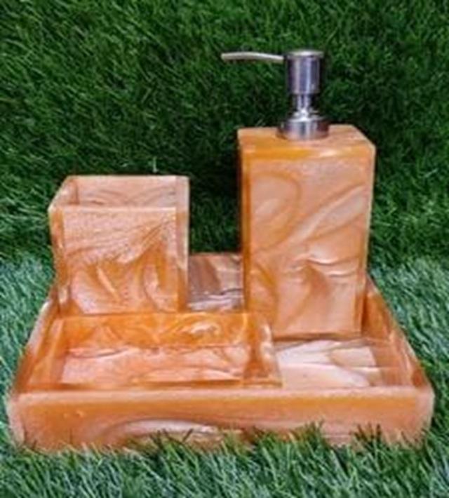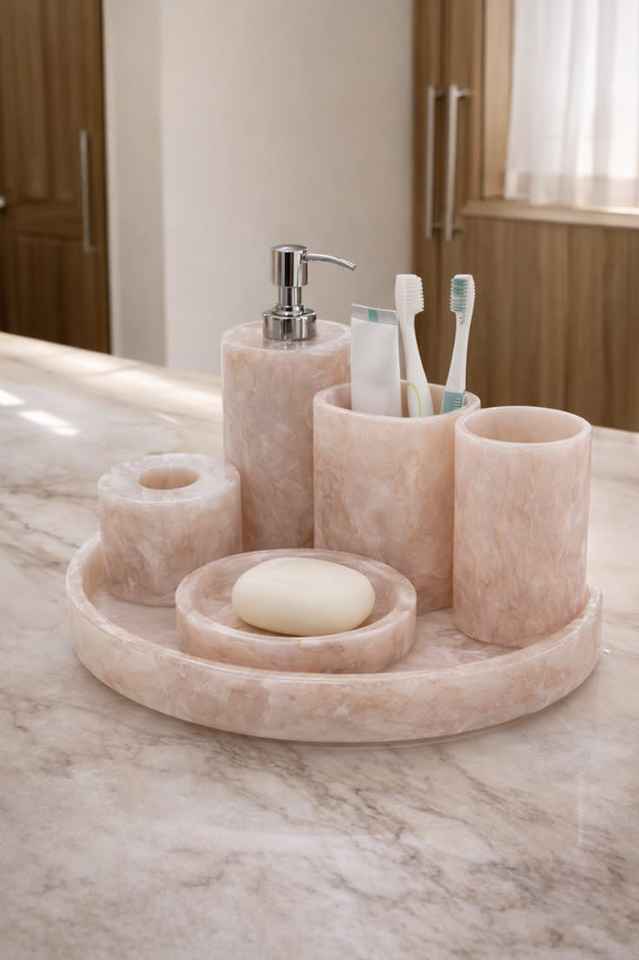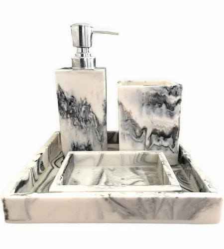 Juego de Accesorios de Baño de Resina de Mármol Personalizado, 4 Piezas: Dispensador de Jabón Líquido, Portacepillos de Dientes, Jabonera y Plato para Artículos de Baño
