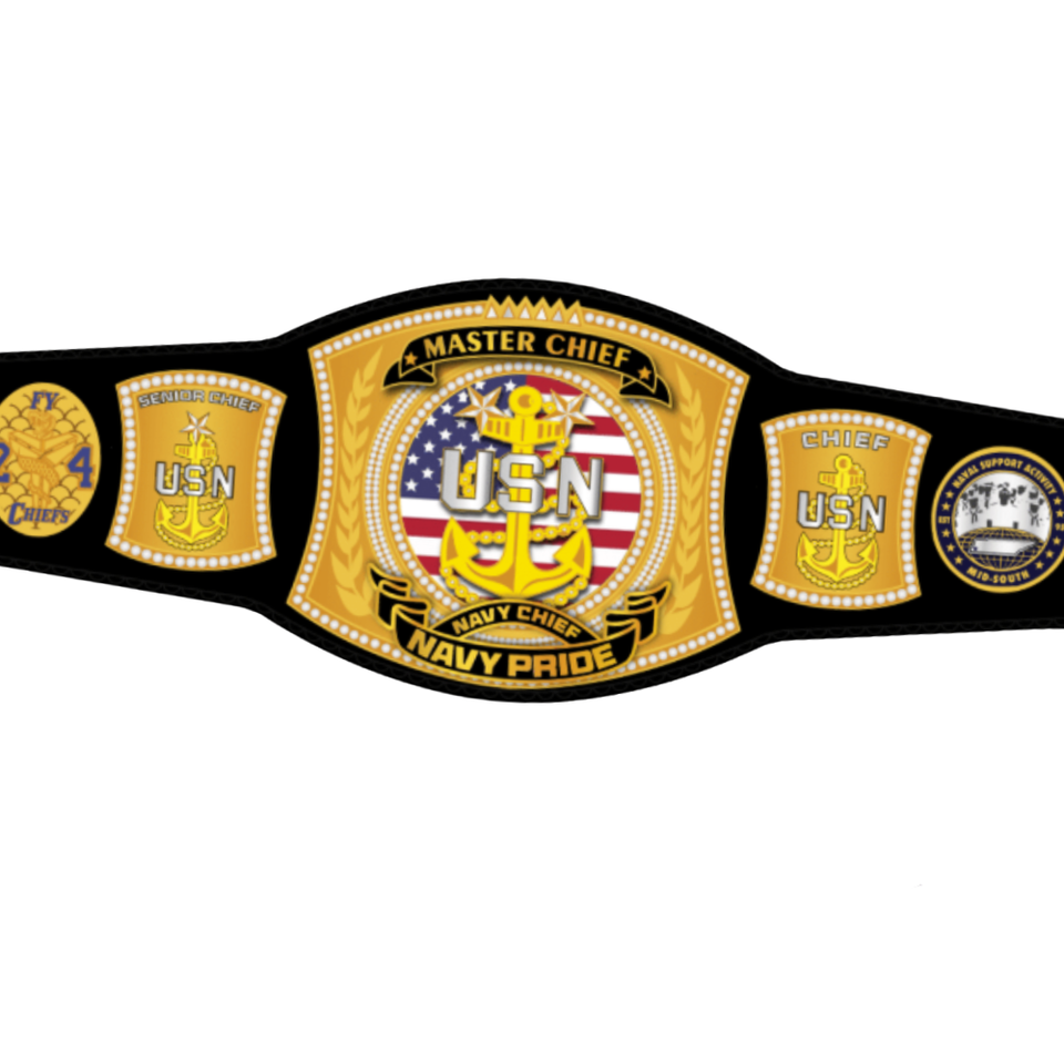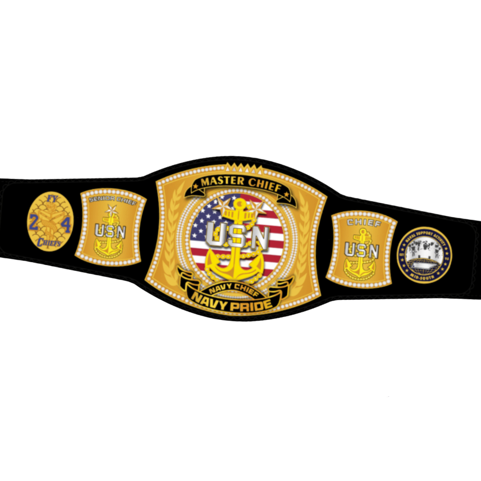 Cinturón de Campeonato de Lucha Libre Personalizado Master Chief USN Navy Pride - Diseño de Alta Calidad con Detalles en Oro, Ideal para Coleccionistas y Aficionados