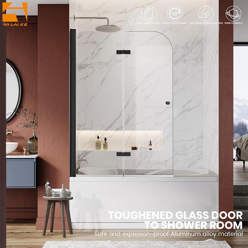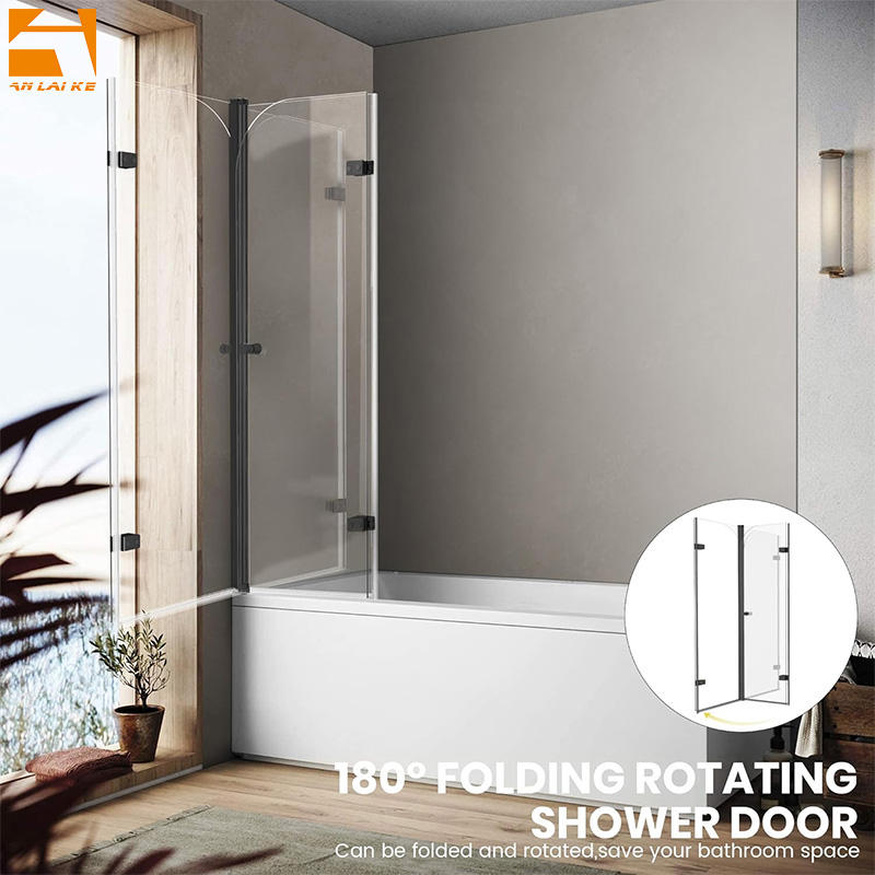 Pantalla de ducha sin marco negra mate personalizada para bañera bisagra de bañera plegable Puerta de ducha 6MM o 8MM Vidrio Templado