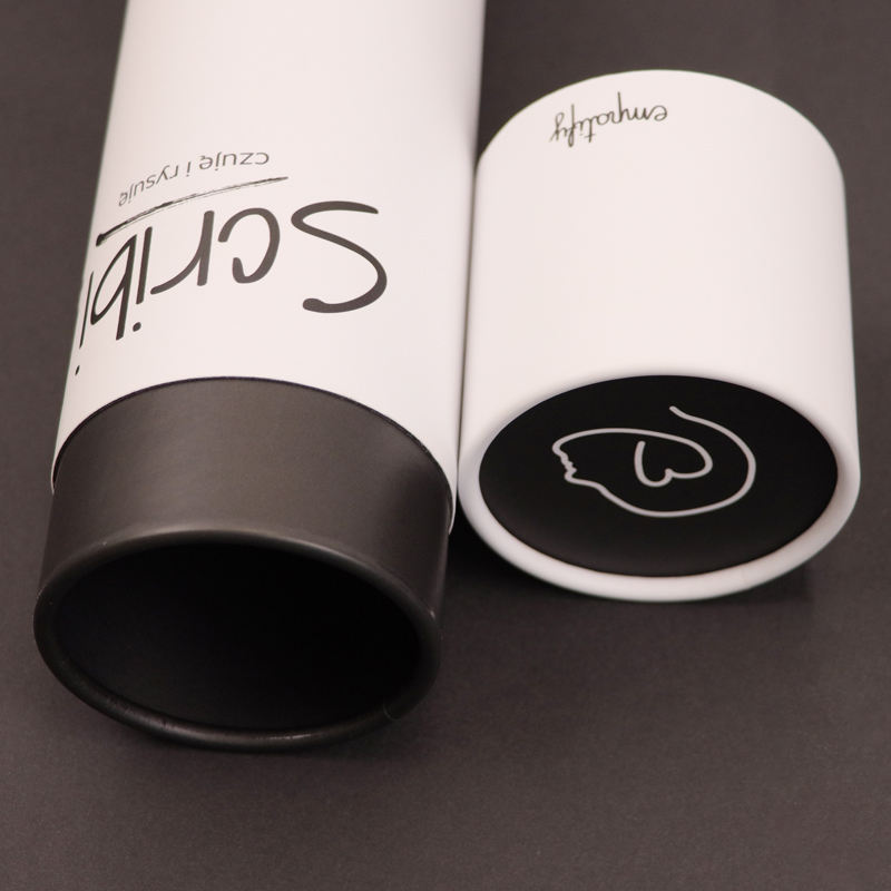 Tubo postal de embalaje de producto de papel de cartón blanco laminado mate personalizado con tapa