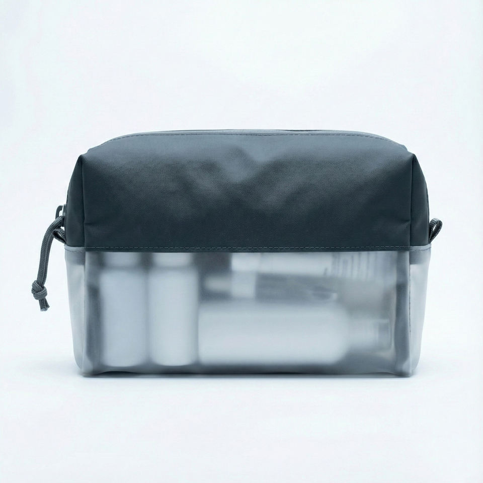 Neceser de Viaje Impermeable Personalizado de Nailon Mate y PVC Esmerilado, Organizador de Cosméticos con Cremallera para Hombre