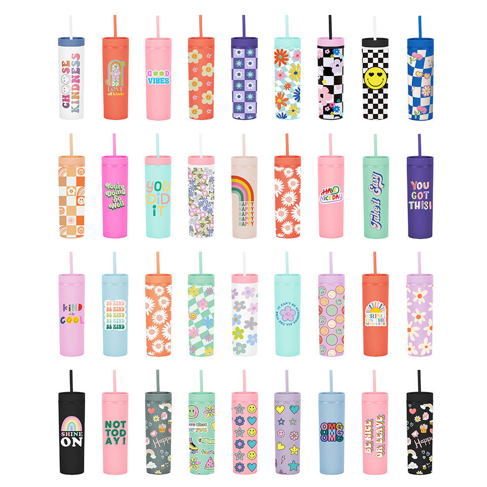 Vasos delgados mate personalizados con tapas y pajitas-Vasos pastel de acrílico de plástico de doble pared de 16oz para batidos de café helado