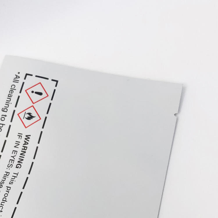Embalaje de plástico blanco mate personalizado, bolsa sellada por 3 lados, bolsa termosellada, bolsas suaves inodoras para tarjetas de limpieza largas, líquido médico