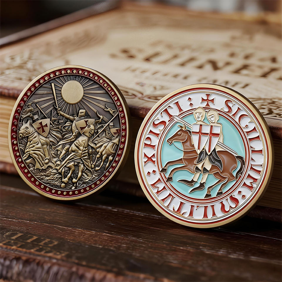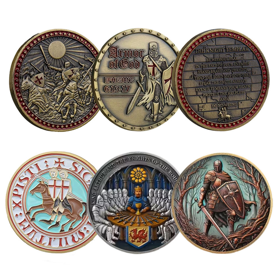 Moneda Conmemorativa Personalizada de Caballero Medieval con Relieve de Cruzado, Moneda de Recuerdo de Doble Cara, Fábrica Física Desde 2004