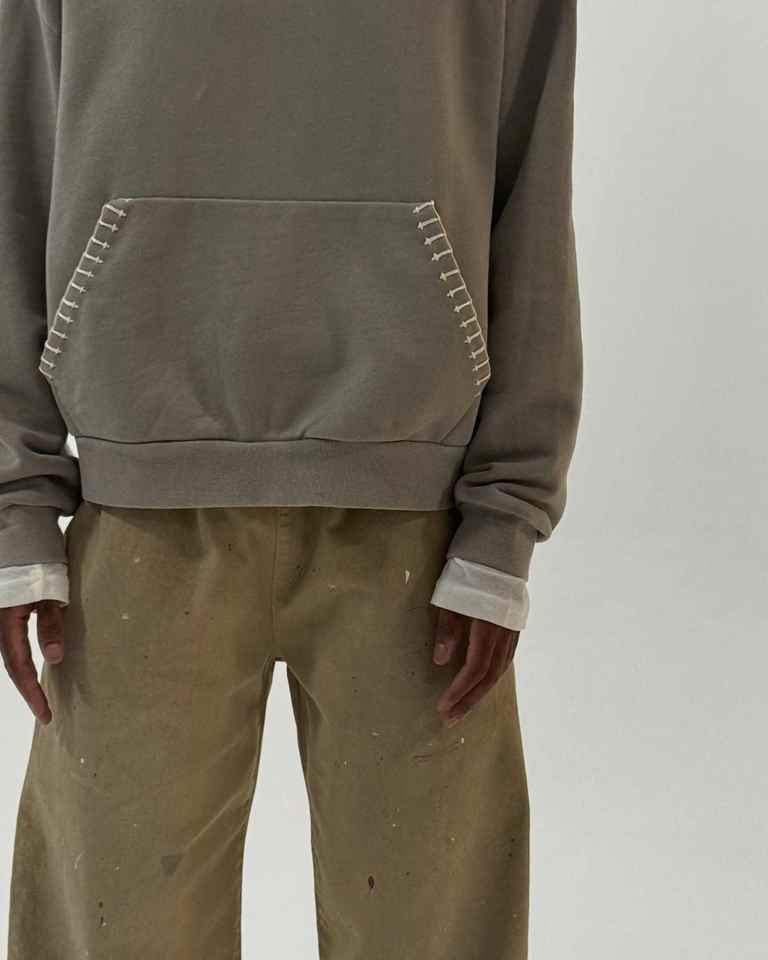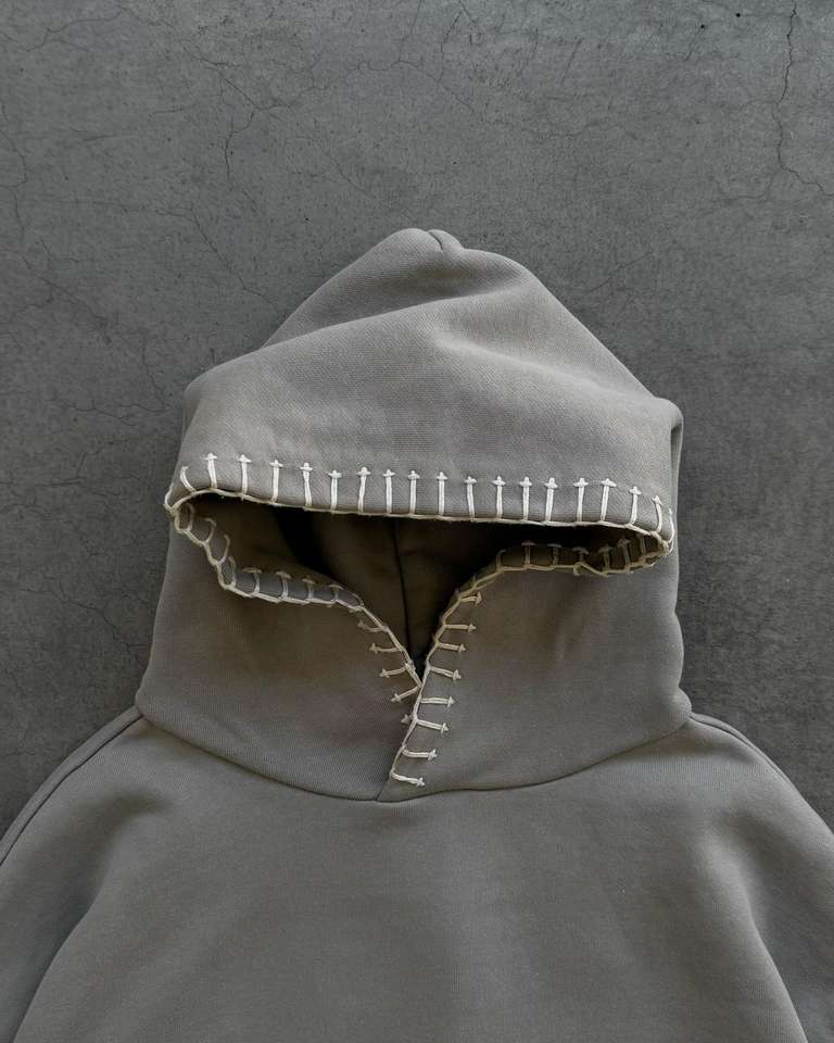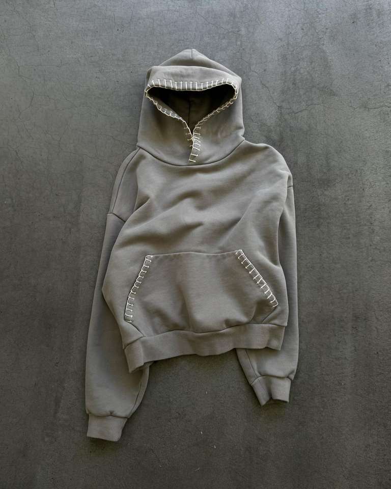 Sudadera Casual Personalizada para Hombre, 100% Algodón, Color Sólido, Bordado Cosido a Mano, Diseño de Costuras en Contraste, Estilo Urbano, Corte Holgado