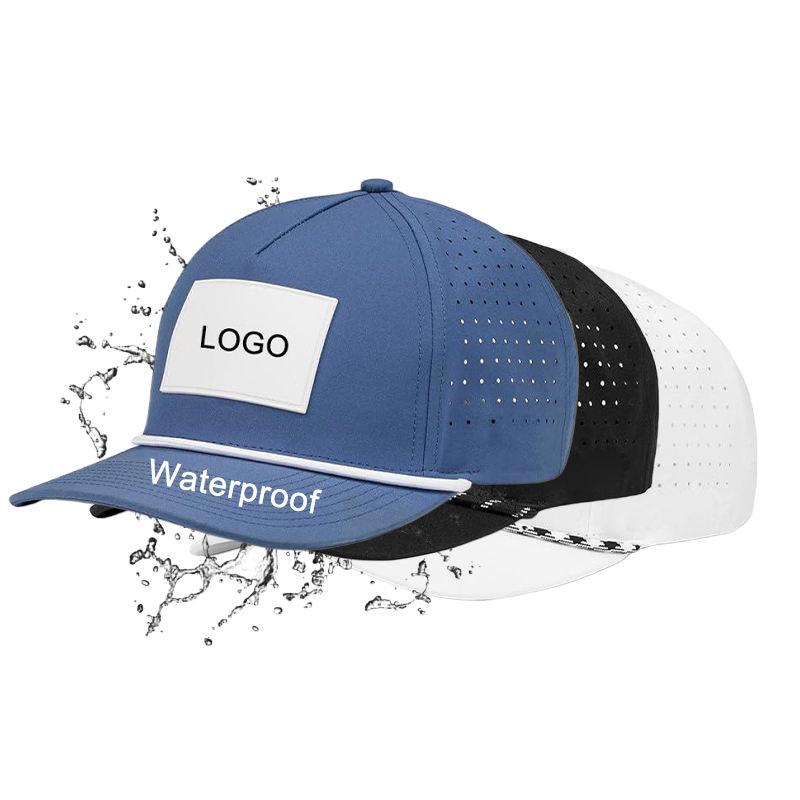 Personalizado Hombres 5 Panel Bordado Logo Perforado Corte Por Láser Agujero Perforado Gorra de Béisbol Impermeable Gorra Deportiva