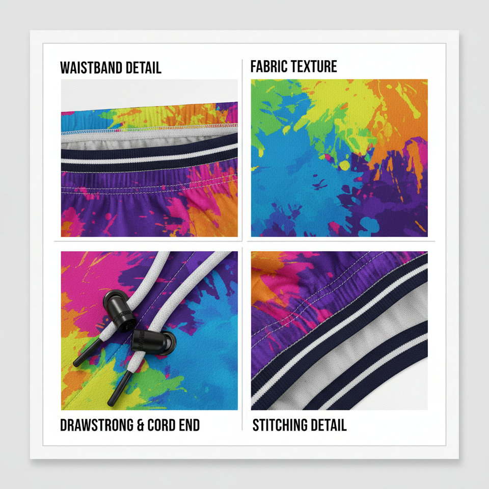 Técnicas:Tela de retales, Corte automatizado, Ropa teñida, Tinte sencillo, Impreso, Corbata tintada, Bordado a máquina/Bordado automatizado