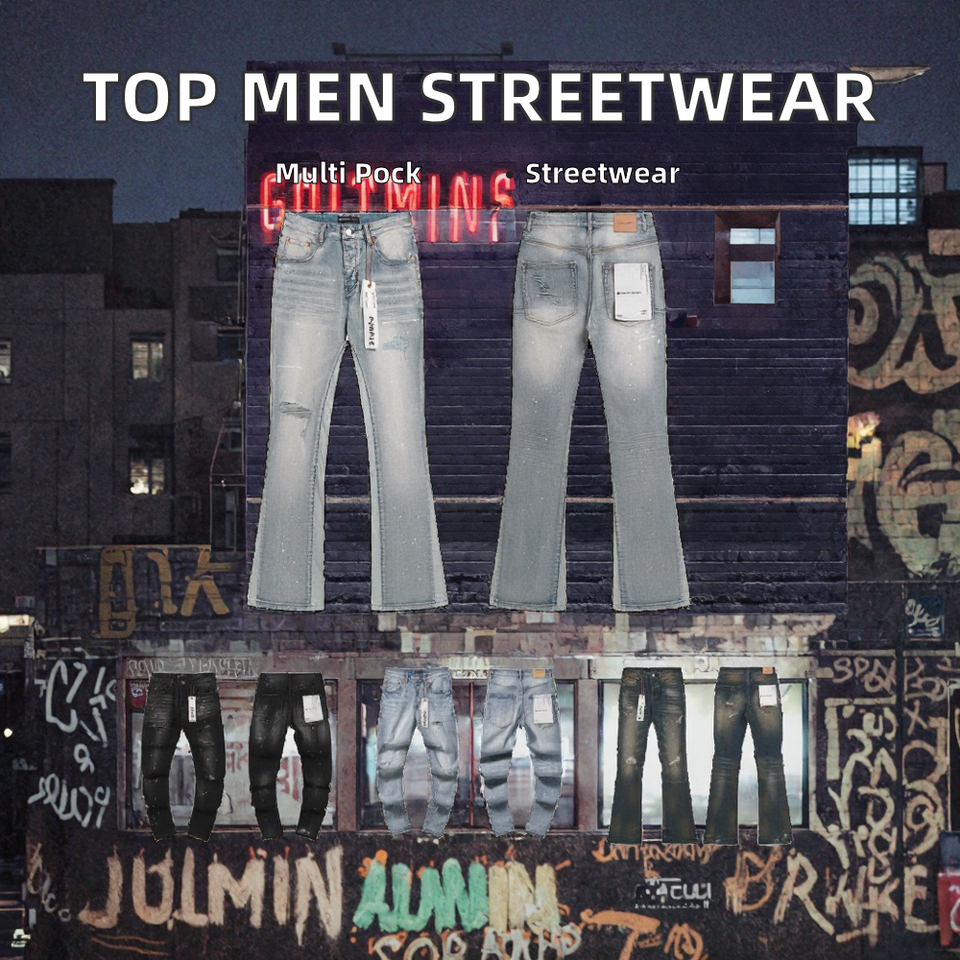 Vaqueros de mezclilla personalizados para hombre, de pierna recta con puño, de alta calidad, al por mayor, estilo clásico, moda urbana, estampado, lavado desgastado