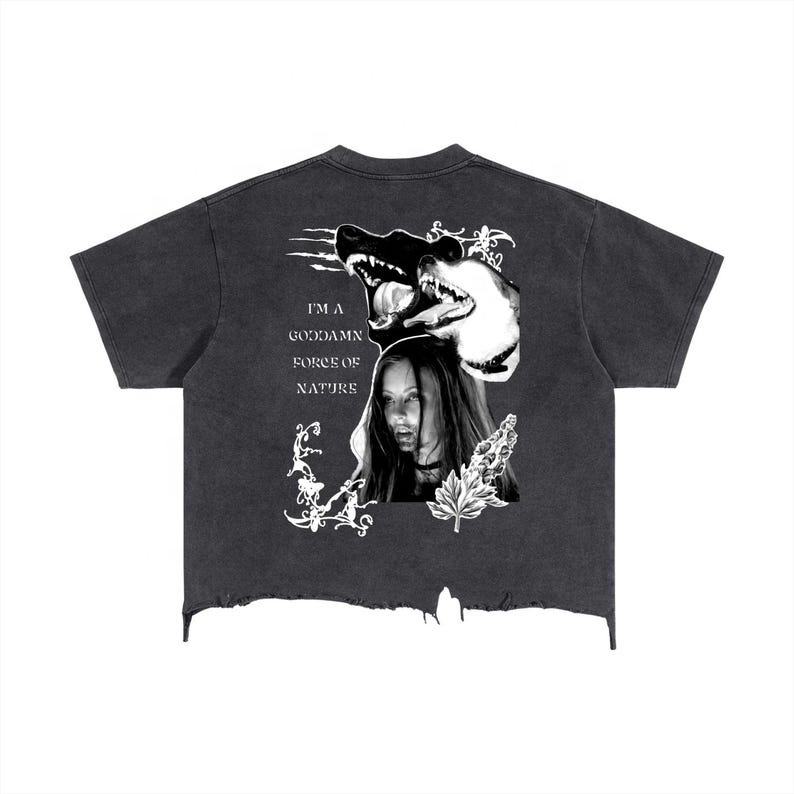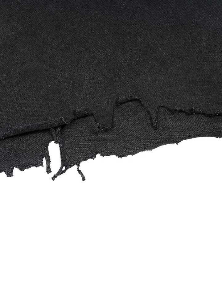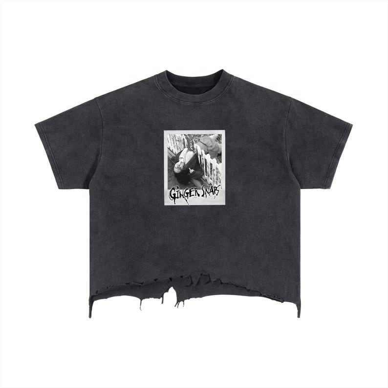 Camiseta de algodón pesado con cuello redondo y hombros caídos para hombre, estilo oversize, con apliques bordados y efecto desgastado, corte holgado y corto.