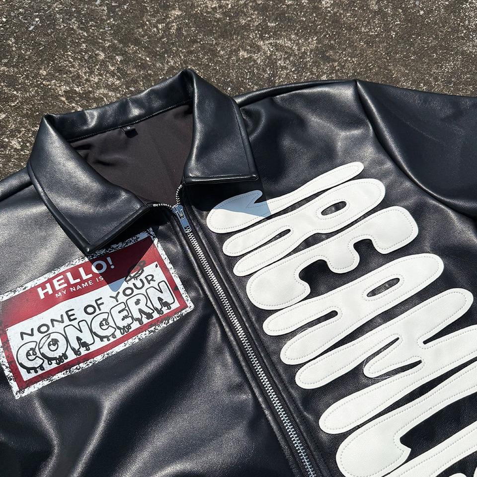 Camisas bordadas con apliques de cuero Pu de alta calidad para hombre, chaquetas con cremallera para hombre, fabricante de chaquetas de cuero Pu negro