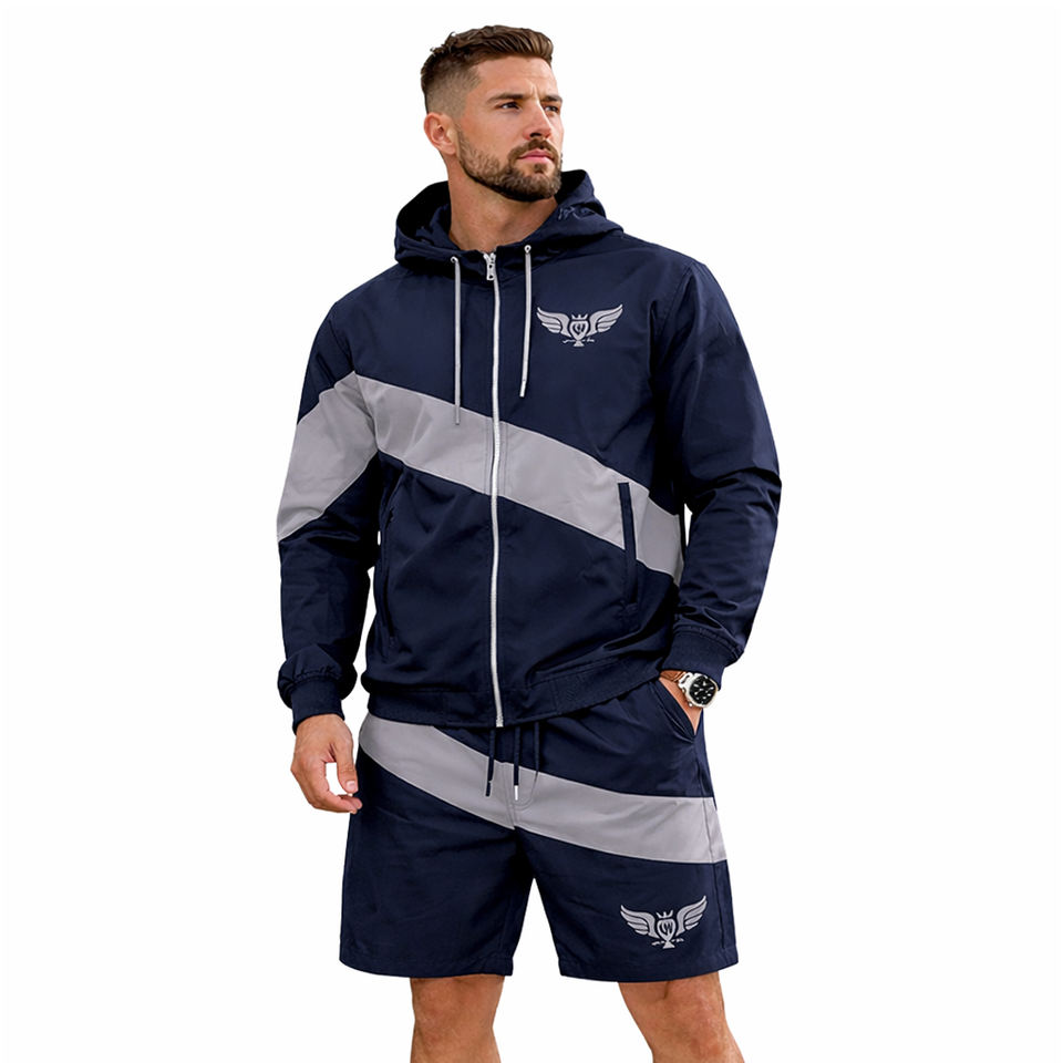 Conjunto de Chaqueta con Capucha y Pantalones Cortos para Hombre, Ropa Deportiva Informal, Traje Deportivo, Cortavientos de Verano, Conjunto de Dos Piezas, Ropa Urbana
