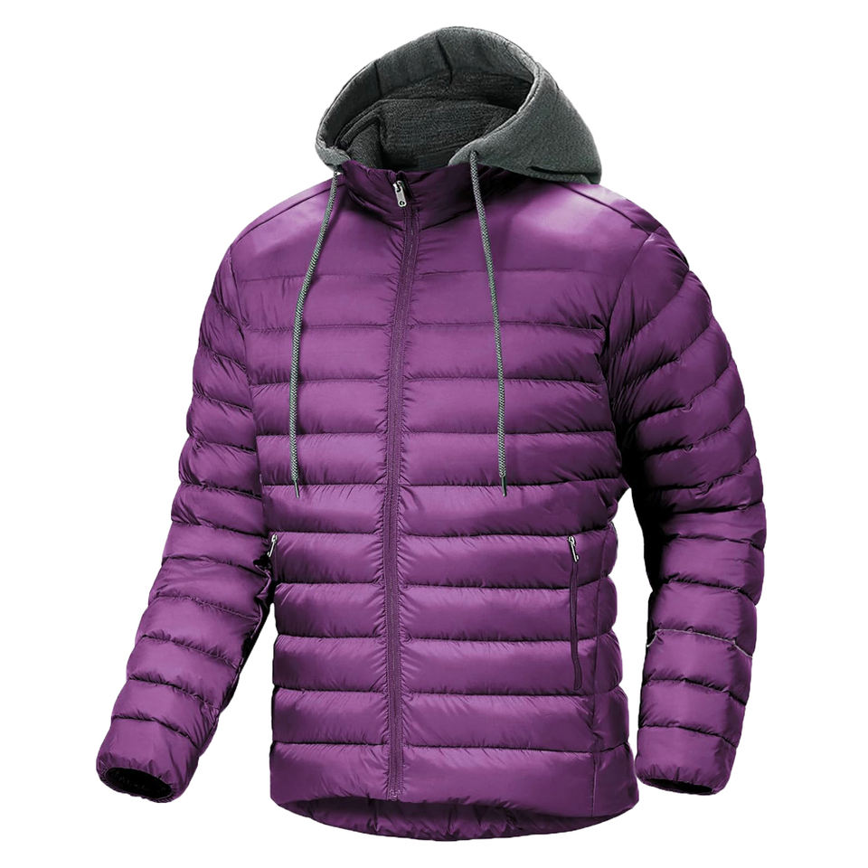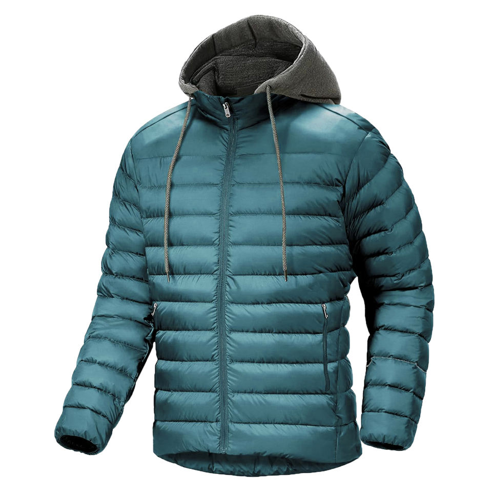 Chaqueta acolchada ligera y plegable para hombre, con capucha de forro polar, aislante térmico, para correr y viajar.