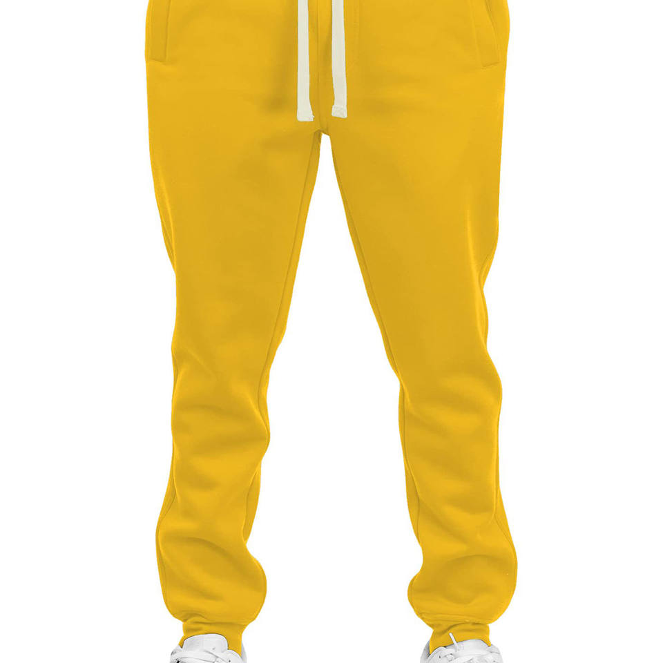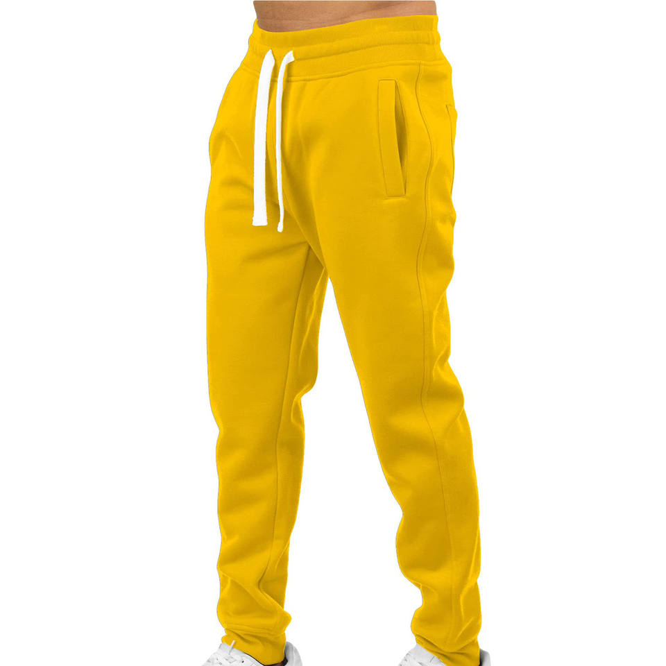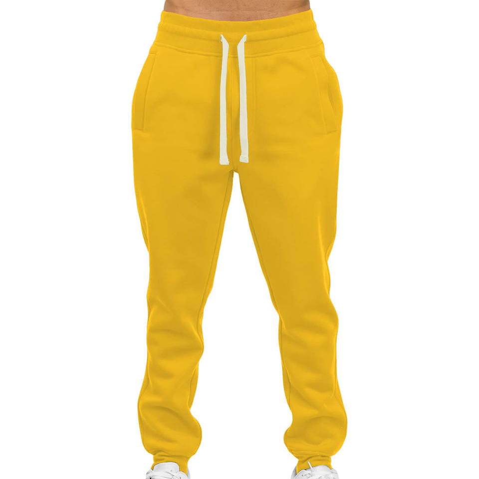 Pantalones sueltos personalizados para hombre Color sólido Amarillo Joggers Pantalones de chándal rectos Pantalones de chándal con logotipo para hombre