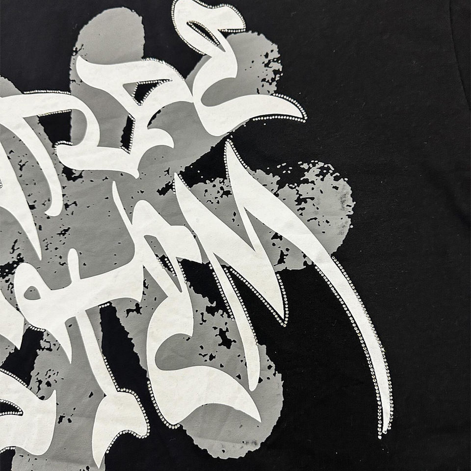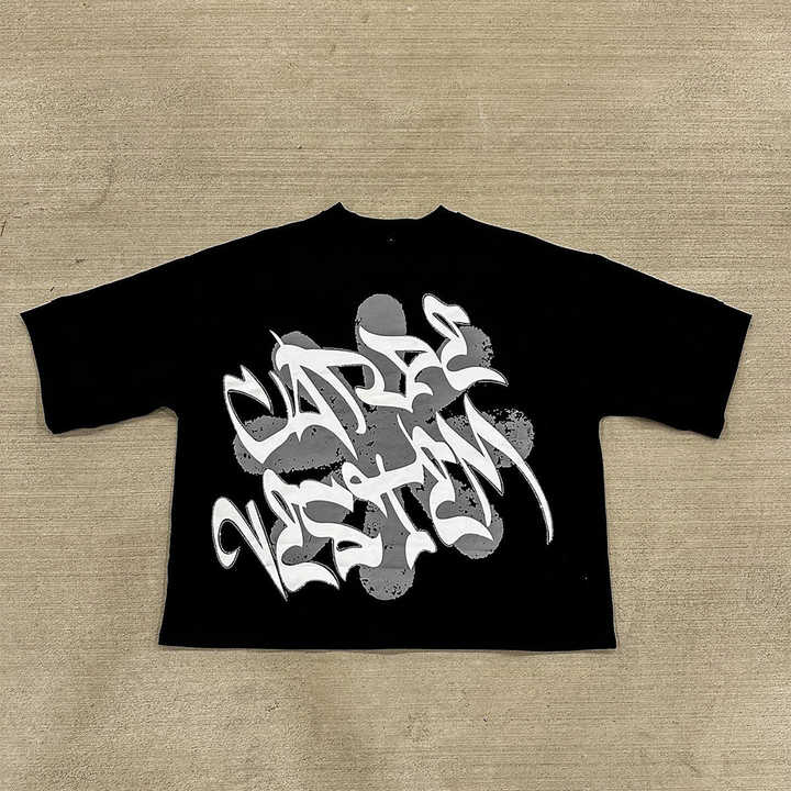 Camiseta personalizada de microfibra para hombre, camisetas de cuello redondo de algodón pesado con timbre, camiseta recortada cuadrada con bordado de retazos con apliques de gran tamaño