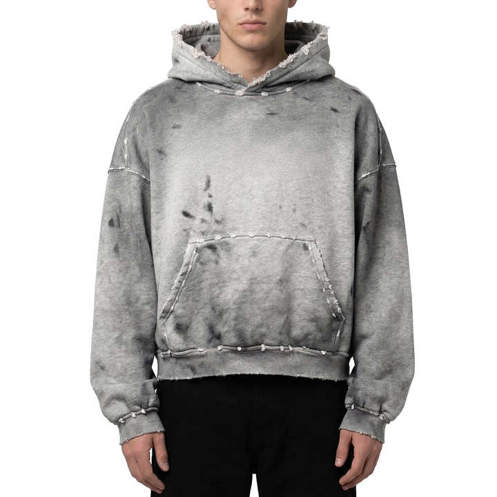 Sudadera con Capucha Extra Grande para Hombre, Lavada al Ácido, 100% Algodón, Estilo Desgastado, Efecto Desteñido por el Sol, Ropa Urbana