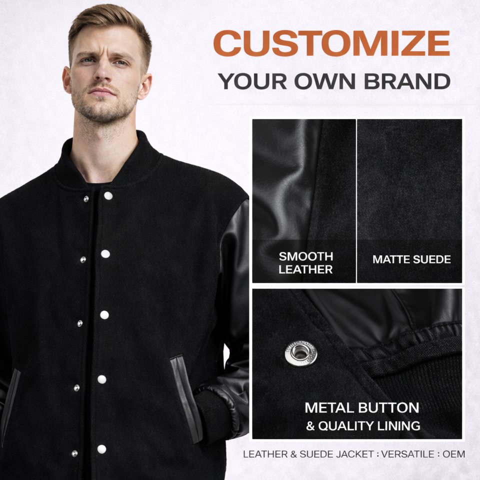 Chaqueta Motocore 2026 para Hombre, Estilo Varsity Vintage, con Parches de Cuero PU y Gamuza, Chaqueta Bomber, Ropa Urbana, con Logotipo Personalizado