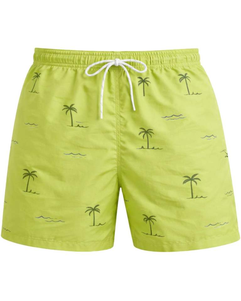 Shorts de Baño Personalizados para Hombre con Estampado de Palmeras, Secado Rápido, Shorts de Playa, Shorts de Verano, Cintura Elástica con Cordón, Proveedor OEM Personalizado