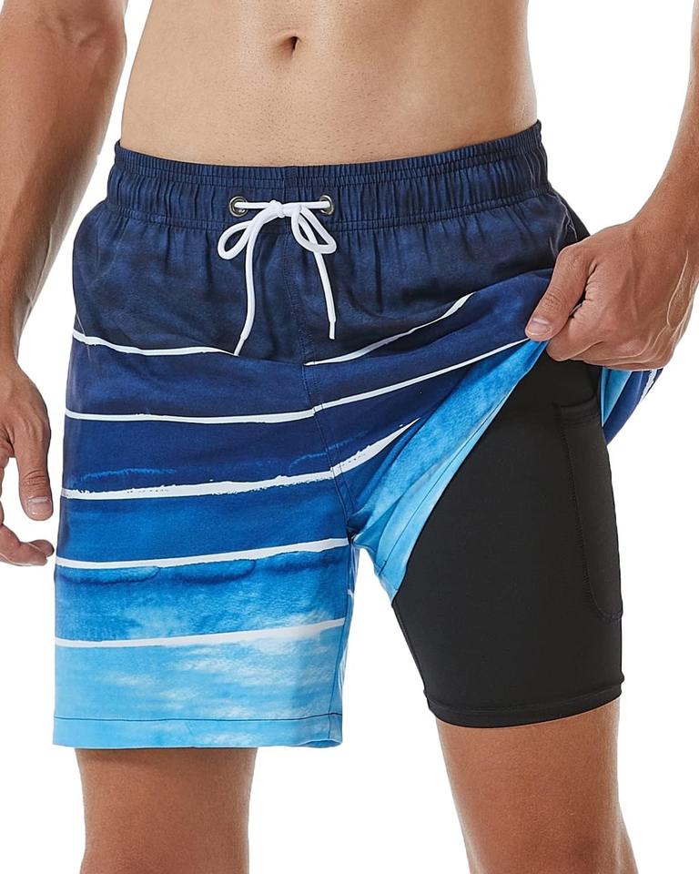 Shorts de Baño 2 en 1 de Secado Rápido para Hombre, con Forro de Compresión, Shorts de Playa Transpirables y Elásticos, OEM ODM