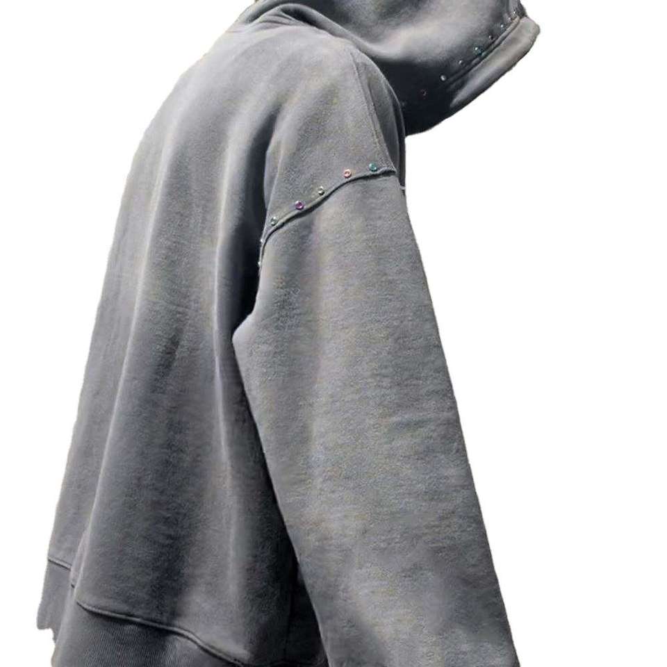 Sudadera con capucha personalizada para hombre con diamantes de imitación lavado ácido invierno peso pesado de alta calidad Sun Faded Streetwear 100% algodón orgánico