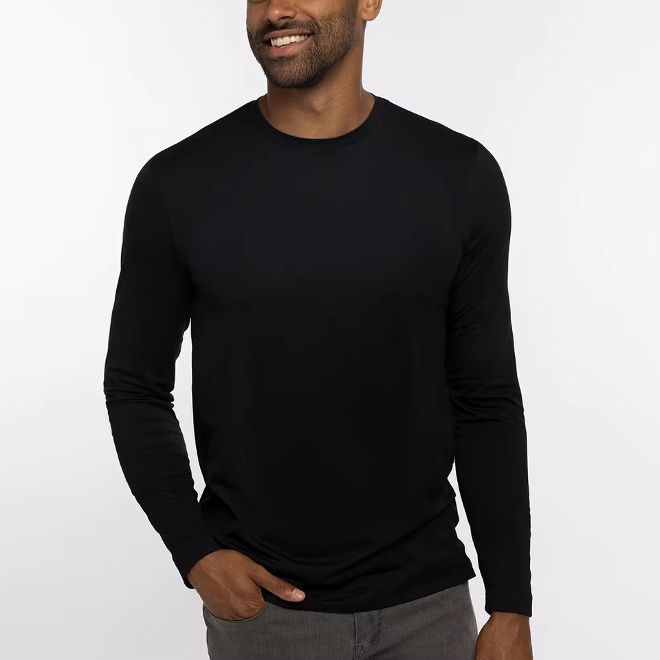 Camiseta deportiva de manga larga personalizada para hombre, Camiseta deportiva de color sólido de secado rápido de gran tamaño, transpirable, de poliéster en blanco, Spandex, serigrafía