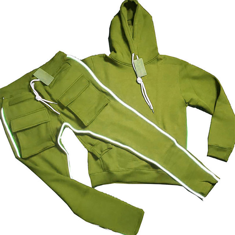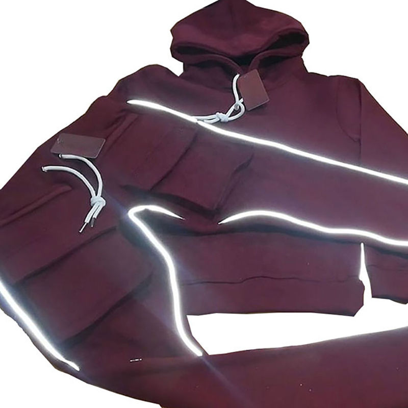 Conjunto Deportivo Personalizado para Hombre, Sudadera con Capucha Extra Grande de Forro Polar Reflectante y Pantalones de Dos Piezas para Ropa Urbana